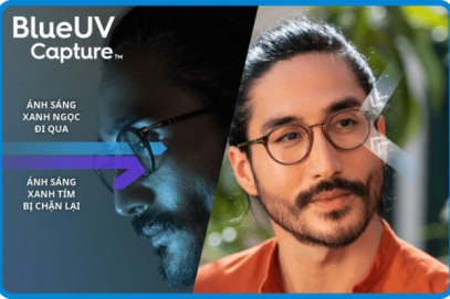 - Chống tia UV và ánh sáng xanh: Tròng kính giúp ngăn chặn tia tử ngoại (UV) từ ánh sáng mặt trời và ánh sáng xanh từ các thiết bị điện tử như TV, điện thoại, đèn led… giúp giảm nguy cơ tổn thương mắt do các tác động của tia UV và ánh sáng xanh.